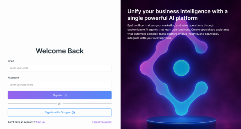 Epsimo AI unifies your entreprise intelligence into a single, powerful AI platform. train agents provide knowledge, and leverage tools – all in one place.